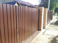 > Забор из профнастила с кирпичными столбами 6 соток